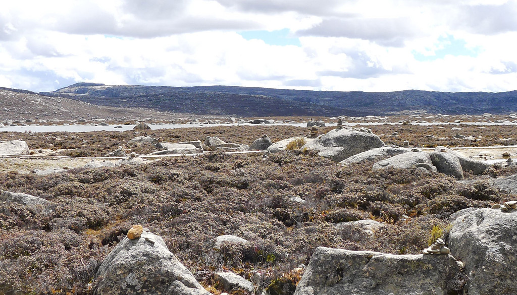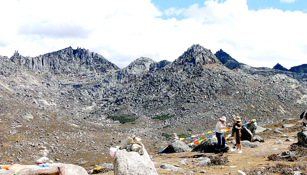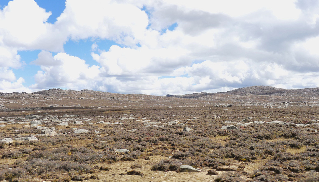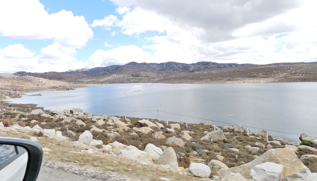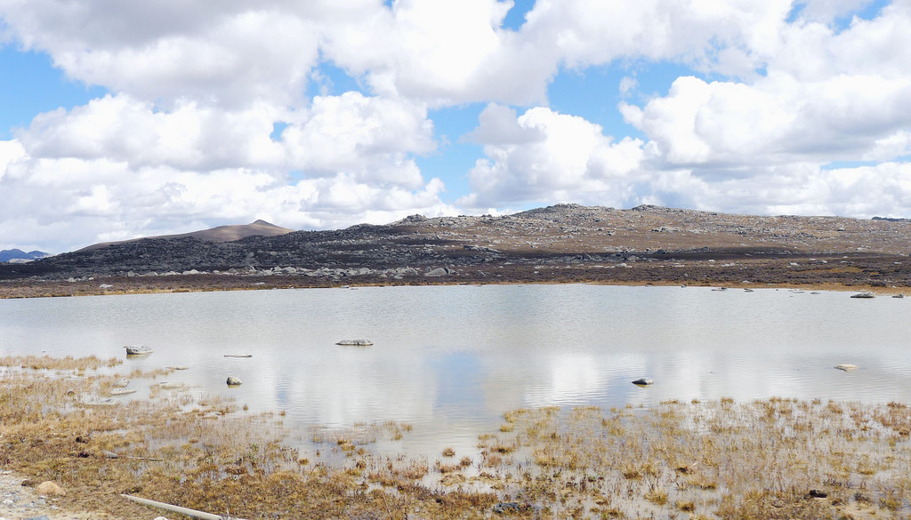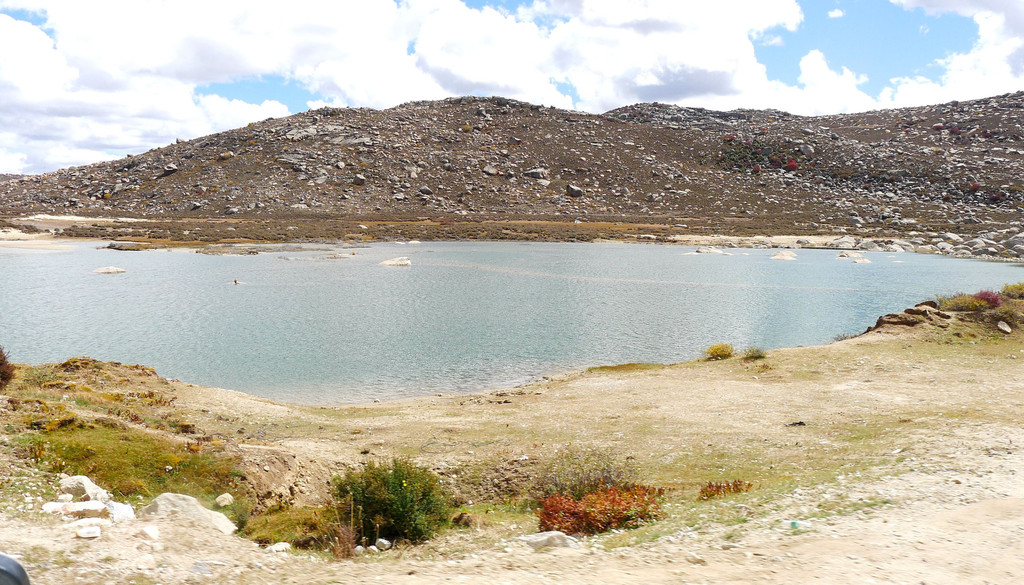 12:24再次出发,五分钟后驶经机场三岔路口,三角形的路口正中有座藏塔,左转是通往“稻城亚丁机场”,我们沿右侧直行,继续驶往理塘。随即就是“海子山自然保护区”,总面积3287平方公里,平均海拔4300-4700米,嶙峋怪石与大小海子星罗棋布,它是青藏高原最大的古冰体遗迹,称为“稻城古冰帽”。因为在平均海拔4500米的高山顶上散落着1145个大、小海子,故而山称“海子山”。汽车一路爬升,巨石与海子接连不断地出现在路边,呈现在我们眼前。