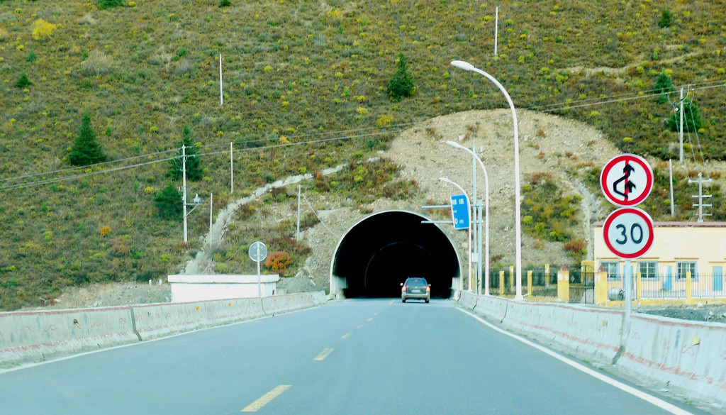上路不久天就黑了,我们这次自驾出游的最大原则就是“绝不赶夜路,特别是山路”,前面几日也基本上都做到了,然而,经过这么一折腾,我们今天却是真正要“既赶夜路,又走山路”。前方不远就是海拔4659米的高尔寺山,虽然修通了隧道,但隧道洞口要比雅江县城高出1400多米,我们必须车开大灯蜿蜒爬坡。爬坡到顶就是全长5682米的“高尔寺山隧道”,隧道内照明充分,路况也要比剪子弯山隧道好得多。