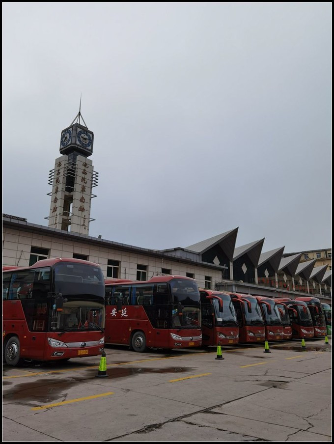中午回到 靖边 县城午餐。然后到客运站买票前往 延安 。 靖边 开往 延安 的班车车次很多,很方便。两个半小时车程就到 延安 。