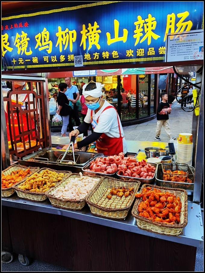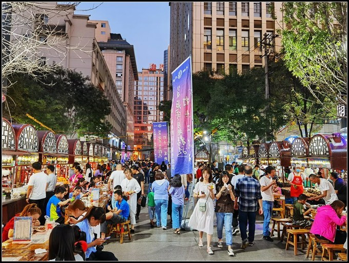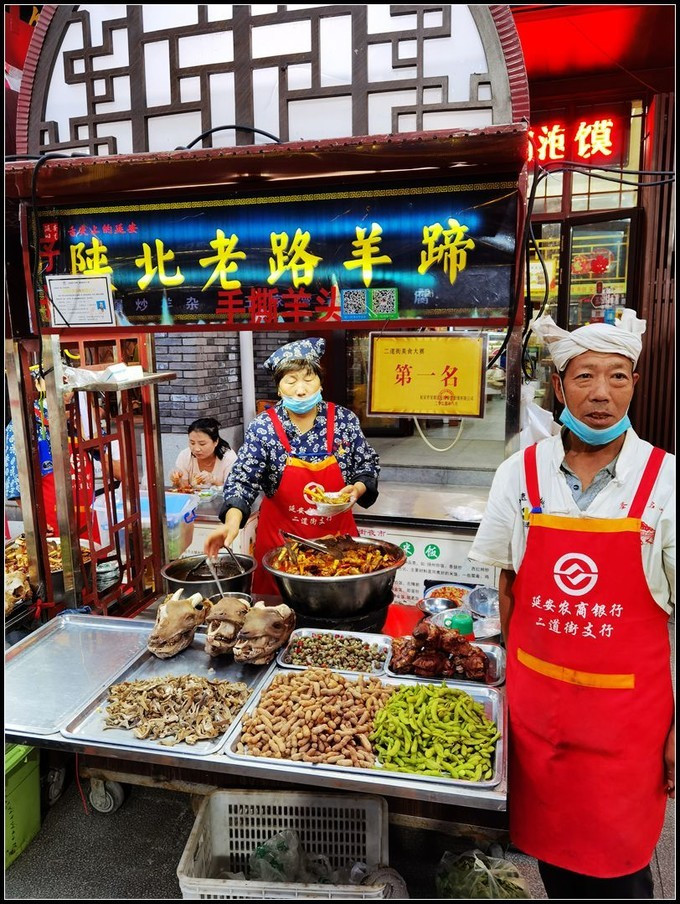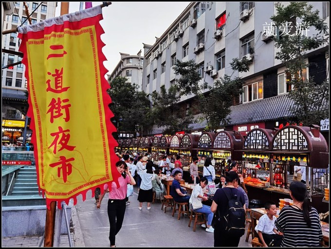 延安延安 二道街夜市呈十字街分布,以 陕北 风味小吃为主,也有许多全国各地的有名小吃,夜市有上百个摊档,到夜晚后人头涌涌,非常热闹。