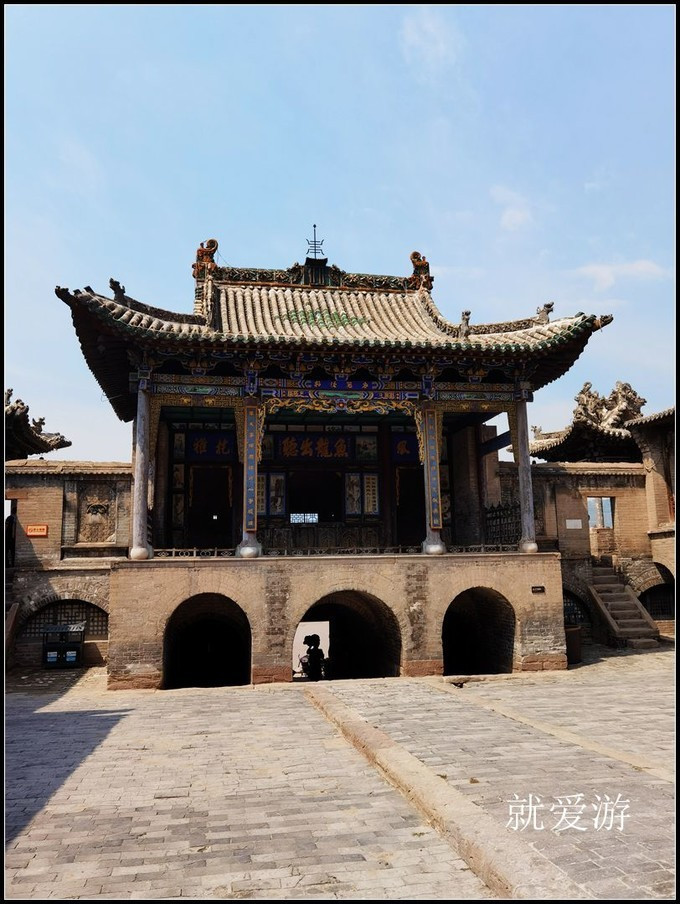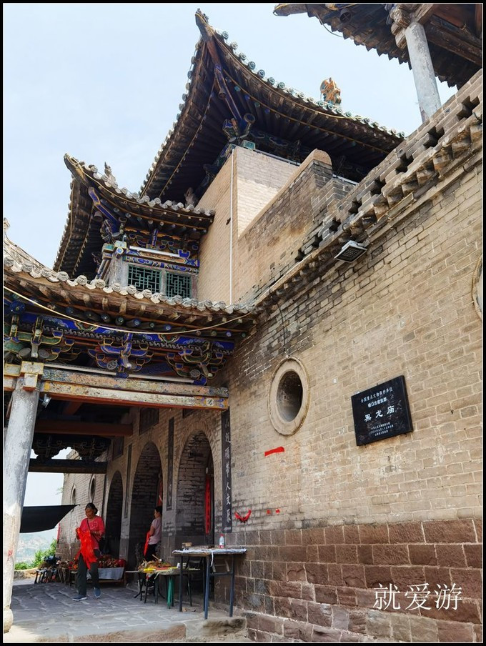 碛口古镇黑龙庙中的乐楼,这座乐楼的音响效果极为奇特,不用扩音设备,万人看戏,声音清脆,乃至响彻数里。所以每逢古会隆节,秦晋两省四乡群众观光游览都络绎不绝。