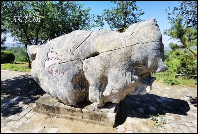 镇北台第一层高10.20米,第二层高8米,第三层高4.10米,第四层高4.40米, 台北 额题向明二字,为万历时巡抚涂宗所书。台的每层有 石台 阶可登,台依山据险,巍峨挺拔。站在镇北台之顶远眺,金沙蓝天、碧澄水库、逶迤长城、绿色林带和欣欣向荣的城郊建设风貌相辉映,构成了无比绚丽的彩色画卷。