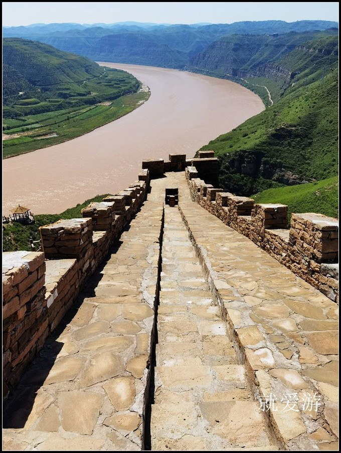 黄河蛇曲国家地质公园清水湾可供游客看和玩的景点比较多。这是古城堡,可以沿着古城堡和栈道下到 黄河 边。