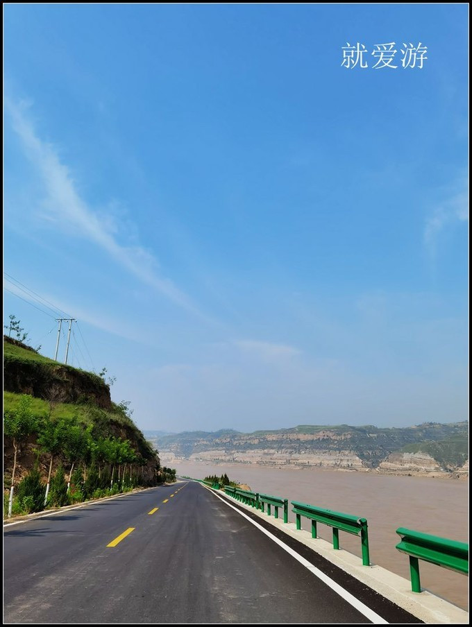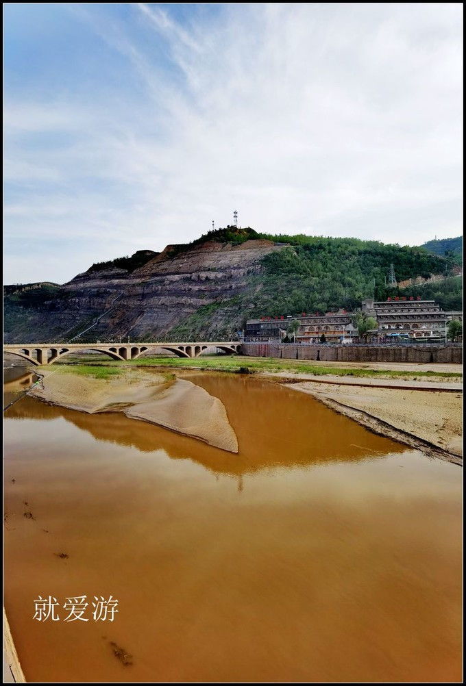 早餐后包了一部的士前往 碛口 ,两地距离110公里谈好180元。包车通过临佳 黄河 大桥进入 山西临县 境内。沿着刚扩改建基本完工的沿河公路行进,这条路还没有正式开放通车,还有很小的两三段在修,需要绕一下,整个新修的道路道面平整,也还没有安装限速监控,全程都几乎没有遇到什么车,司机开的飞快,极爽。一个半小时就到了 碛口 。