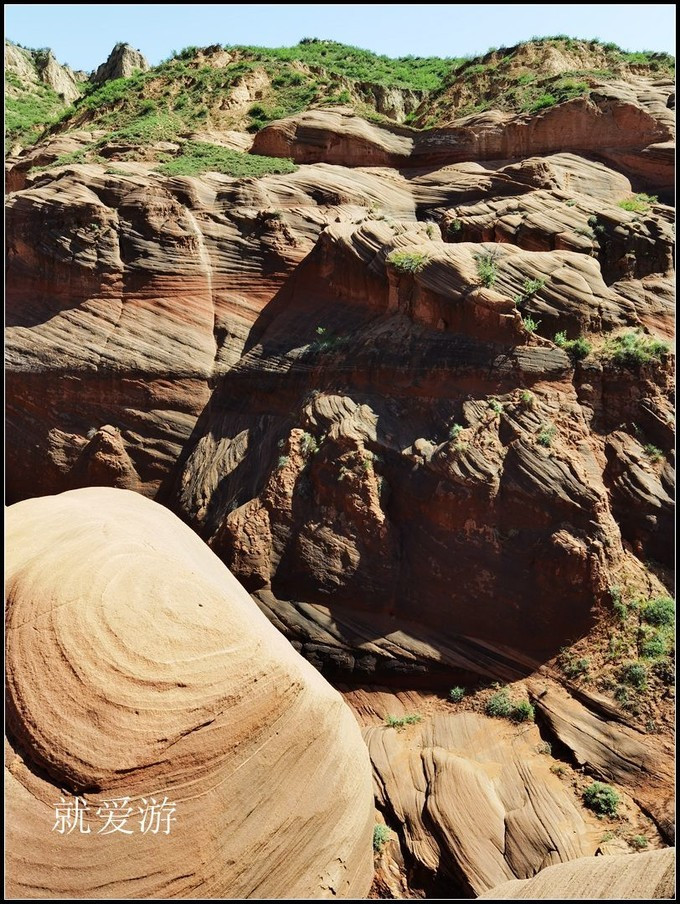 波浪谷波浪谷沿途看到的 陕北 黄土高坡,看起来这些年退耕还林政策很有成效,山都是绿的了。