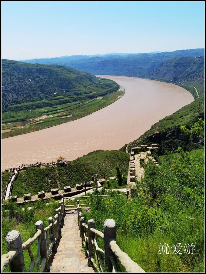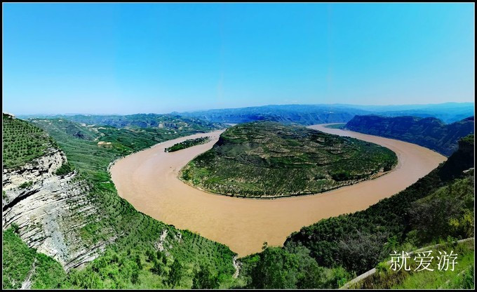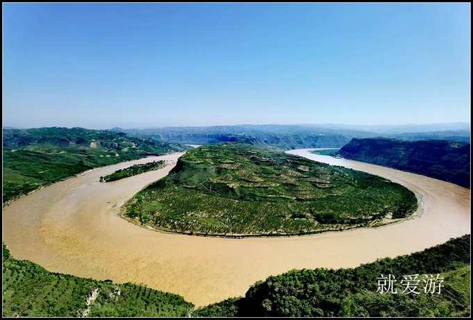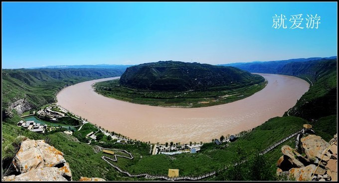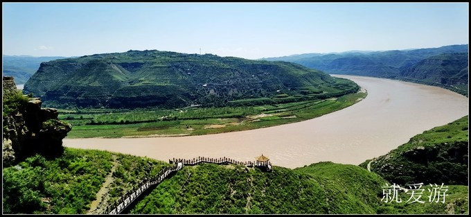 黄河蛇曲国家地质公园延川黄河 蛇曲国家地质公园位于 陕西 和 山西 交界峡谷南部地段的 黄河 沿线,公园北起 延川 县延水关镇,南至清水湾,全长50余公里,东西宽约1~5公里,总面积170平方公里,主要地质遗迹面积56.2平方公里。公园分四个地质遗迹景观区,包括延水关河谷阶地貌旅游区、苏亚湾高原生态旅游区、乾坤湾蛇曲地貌旅游区、清水湾蛇曲地貌旅游区,以及三个历史人文景观区,即小程村民俗文化村、碾畔原生态保护区、郭家崾民俗文化旅游区。由于景区很大,到达景区后都要换乘景区的摆渡中巴车。