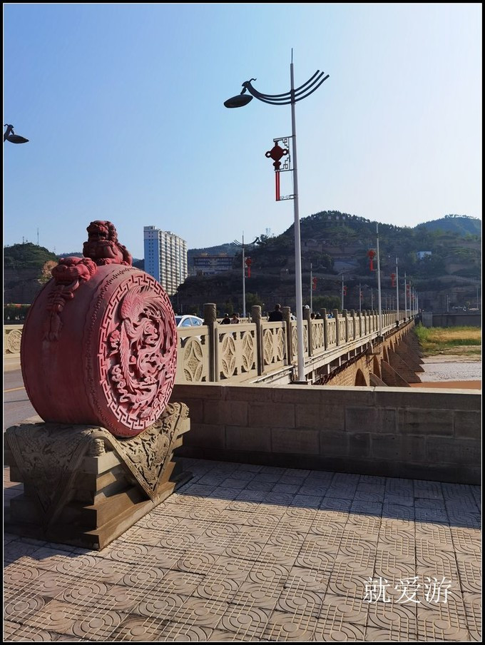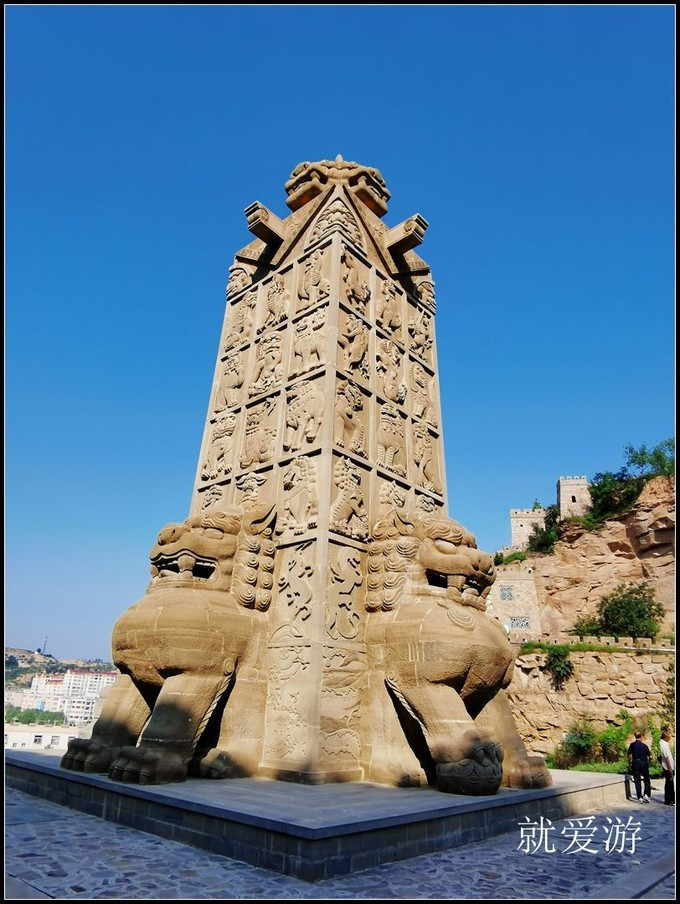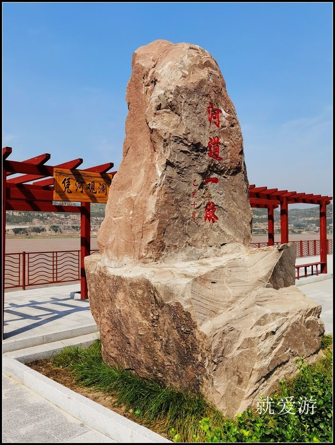 毛主席东渡 黄河 纪念碑。1948年3月,毛泽东周恩来率中央机关由 黄河 西岸 陕西吴堡 县川口渡口上船,东渡 黄河 在 黄河 东岸 山西临县碛口 镇高家塔渡口上岸,前往 河北西柏坡 ,开启了解放战争的新局面。