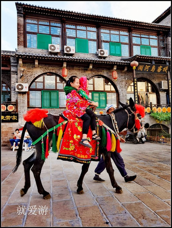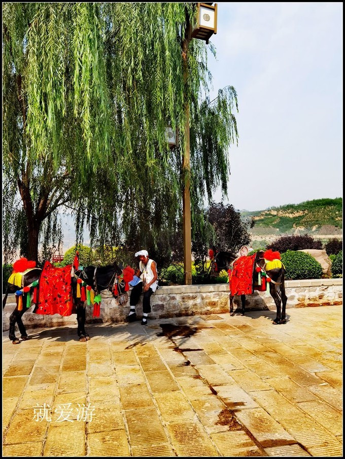 碛口古镇黄河 边上供游客花钱骑乘的毛驴都被披红挂绿,打扮得花枝招展的。
