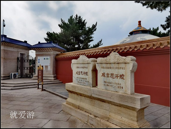 成吉思汗陵旅游区成吉思汗陵,原为全体 蒙古 民众供奉的“总神祗”—八白宫(室)。1227年,成吉思汗去世后,始建于 鄂尔多斯 的祭灵白室,起初一直处于隐避状态。为永恒祭祀成吉思汗而建立的白宫,随着历史的变迁, 蒙古 王朝和守护、祭祀部落 鄂尔多斯 部的变迁,几百年来辗转南北,经受了历史的变幻。新 中国 成立后,1954年在中央人民政府的亲切关怀下 新建 成吉思汗陵园,1956年陵园落成。以后几次进行扩建建设,特别是2004年开始进行全面修缮建设,使成吉思汗陵显示出草原帝王陵雄姿。