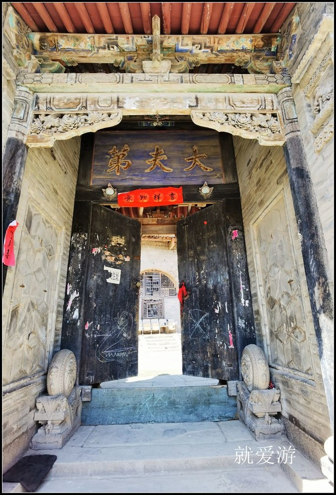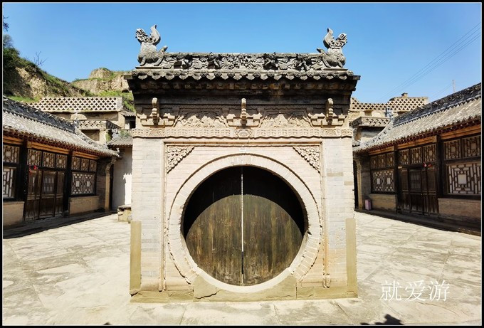姜氏庄园姜氏庄园姜氏庄园主人姜耀祖是 陕北 有名的大财主。他修建的这座庄院为 陕西 地区最高等级的“明五暗四六厢窑”式窑洞院落。庄院建有高大厚实的城垛式院墙。姜氏庄园院门虽还挂有文管所的牌子,但文管所早已撤销了。目前属于无人管理的状态,房屋建筑显得陈旧破败,卫生乱七八糟。我们到时,几个农村老妇在门口拦着收费,说这里是她们的房产,逼着每个人交20元才让进入,给钱后连个票也没有。