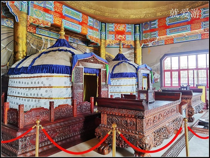 成吉思汗陵旅游区成吉思汗陵旅游区陵宫内供奉着成吉思汗的八白宫(室),成吉思汗陵在过去没有永久建筑,就是由马匹拉着供奉成吉思汗的这八顶 蒙古 包(八白宫)在草原游荡。
