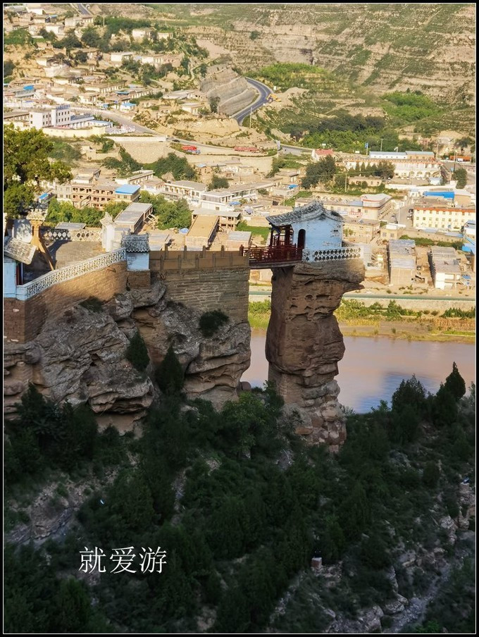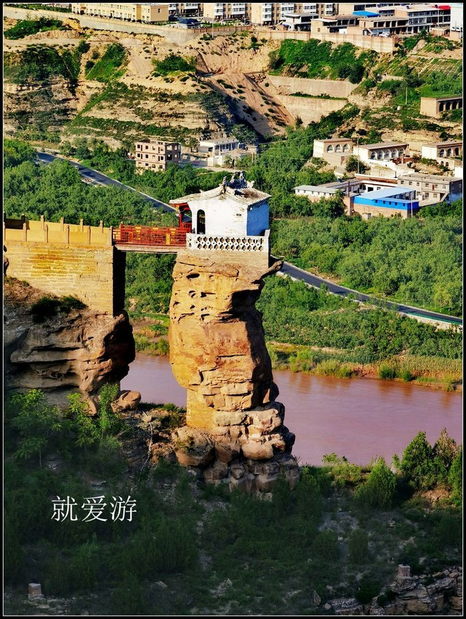 香炉寺香炉寺素有 佳县 八景之一香炉晚照之美誉。香炉寺地势险峻,香炉石凌空而起,断桥惊险异常,置身其上,如凌绝空际,低头俯看,滔滔 黄河 激流而下,汹涌澎湃,佳临 黄河 大桥横贯东西,如龙卧波。