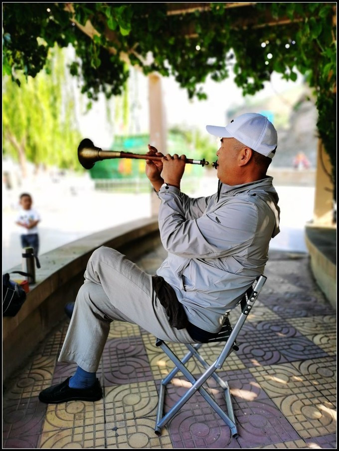 碛口古镇这位一身穿着过去的 陕北 农民打扮的汉子,其实也可算是位职业模特了,每天打扮成这样,就是等着游客和摄影发烧友拍他,每个人要收10元钱。这是在远处用华为P40pro长焦镜头拍摄的。