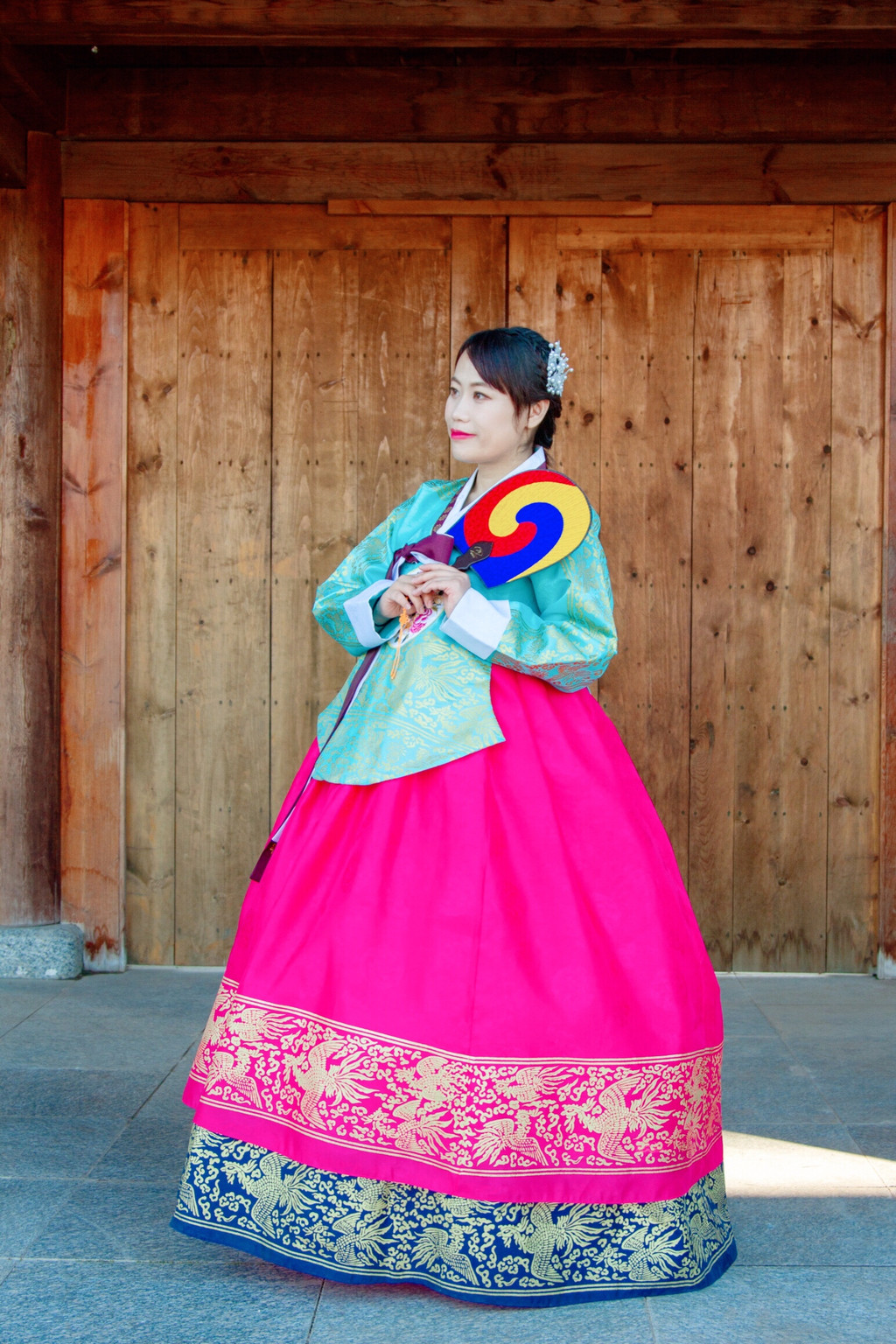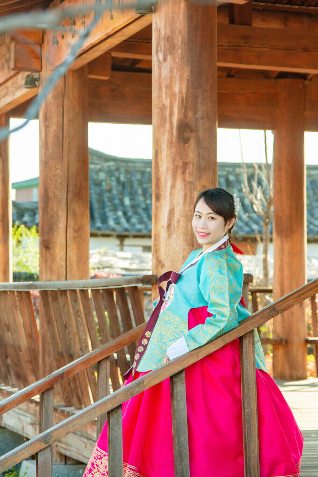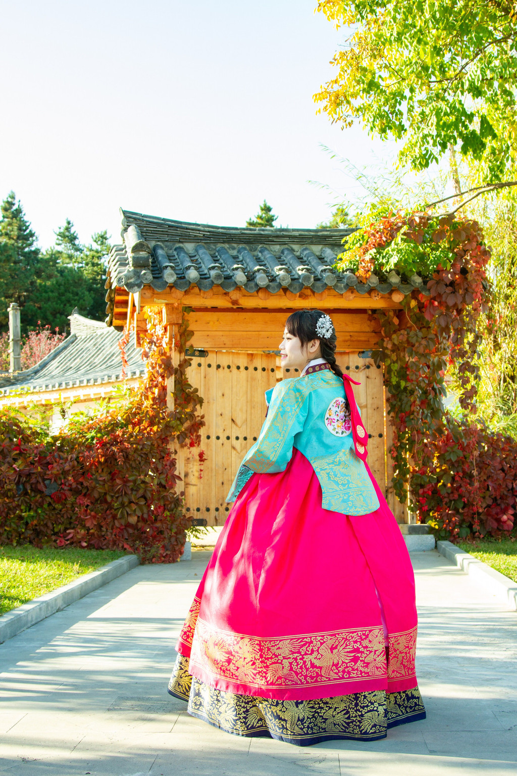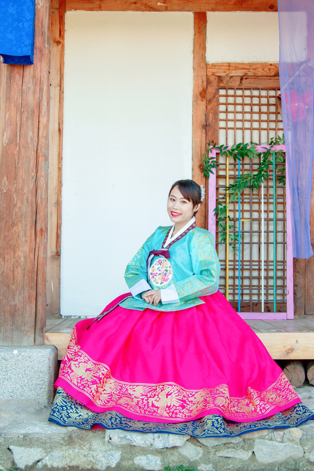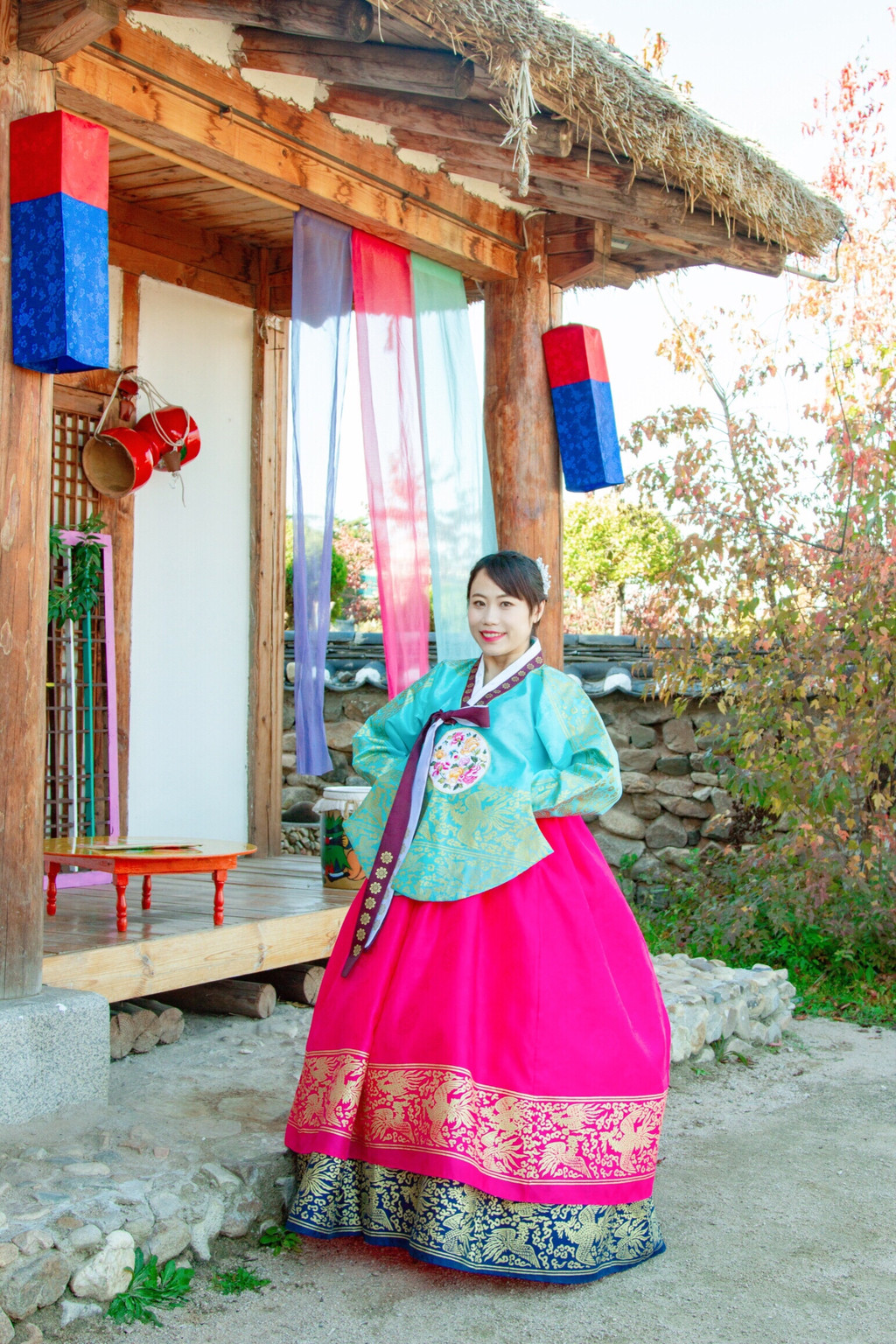 3、 尽量挑选颜色比较艳丽的,不要觉得太艳俗,拍出来效果肯定出片。走在那朝鲜族风情的建筑中,随手一拍那可就是唯美大片。