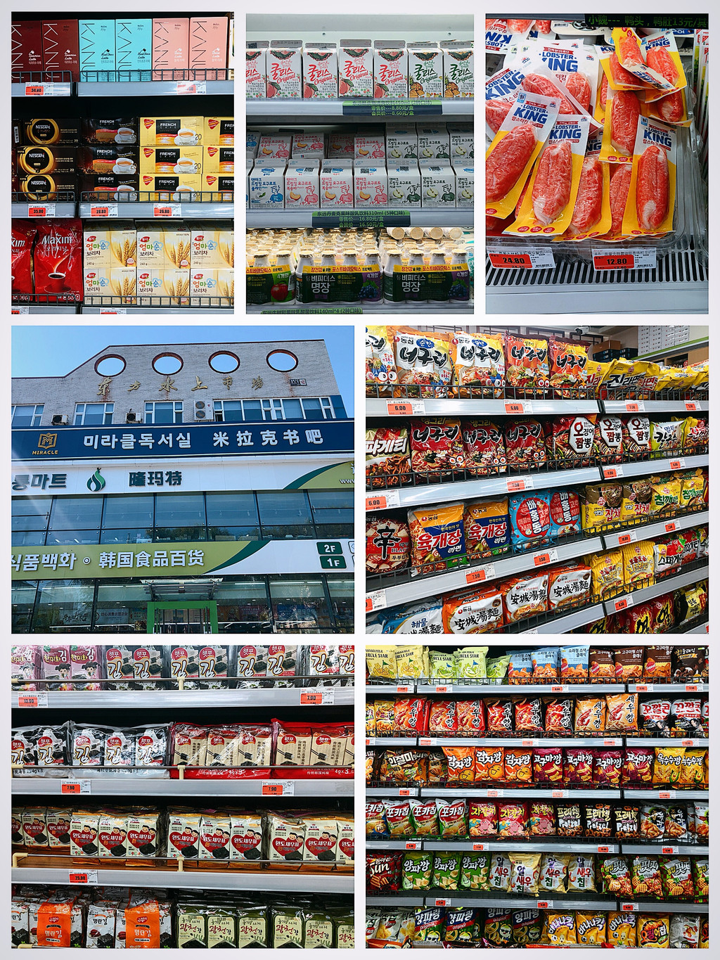 进口超市,各类韩国食品,当然这些你也可以在淘宝上网购。超市拍照片感觉确实很像在韩国。