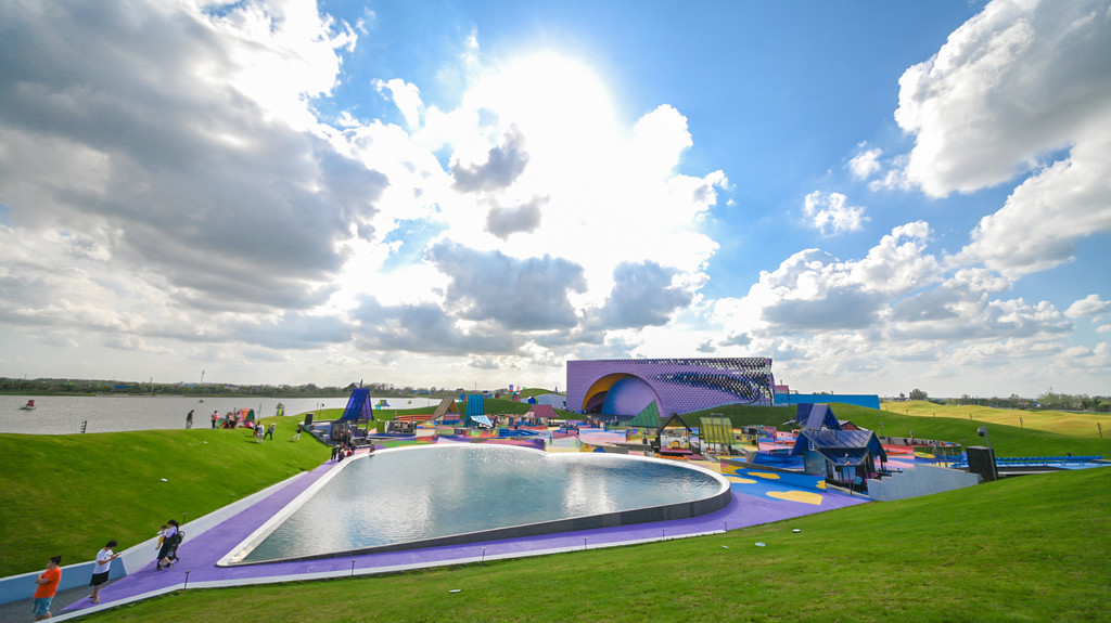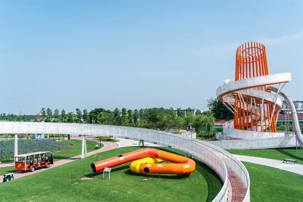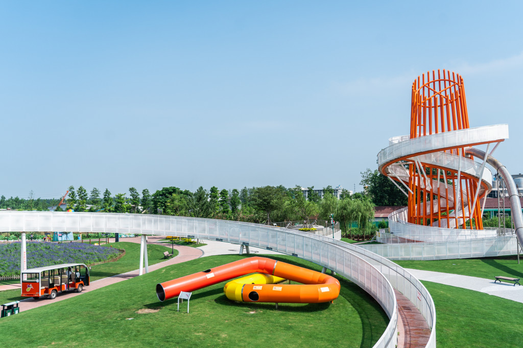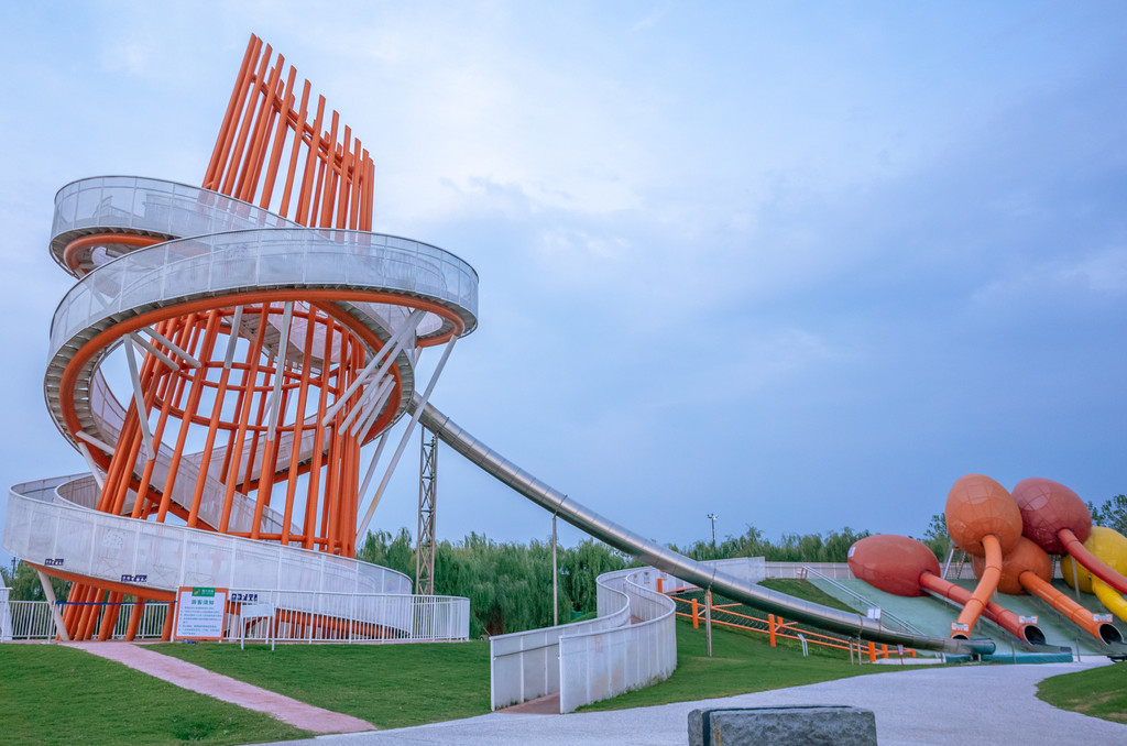 郁金香造型的滑梯,是很有特色的滚轴滑梯,从上面滑下来是柔软的白沙地。夏日自带喷灌降温系统,在水气氤氲中,坐在音乐秋千上轻轻晃动,发出悦耳的音乐声,独特一份夏日中的清凉。另外还有神奇的阿基米德水玩区、无动力压水机、青虫传声筒等游玩项目。