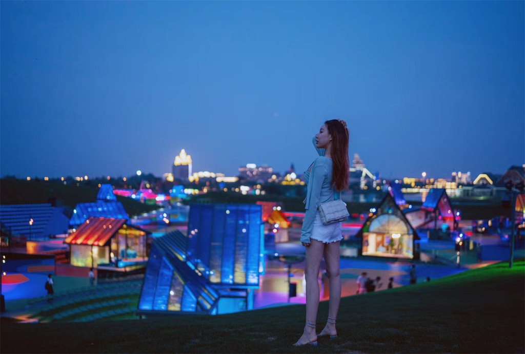 当夜幕变得湛蓝,才明白为什么这里叫做戏剧幻城,如月剧场和如心剧场,在浓郁的色彩的如梦似幻,水面上倒映出一轮金黄色的弯月,如月剧场名字的来源出自这里。着一身红裙,在这戏剧幻城中轻舞,自由随风。