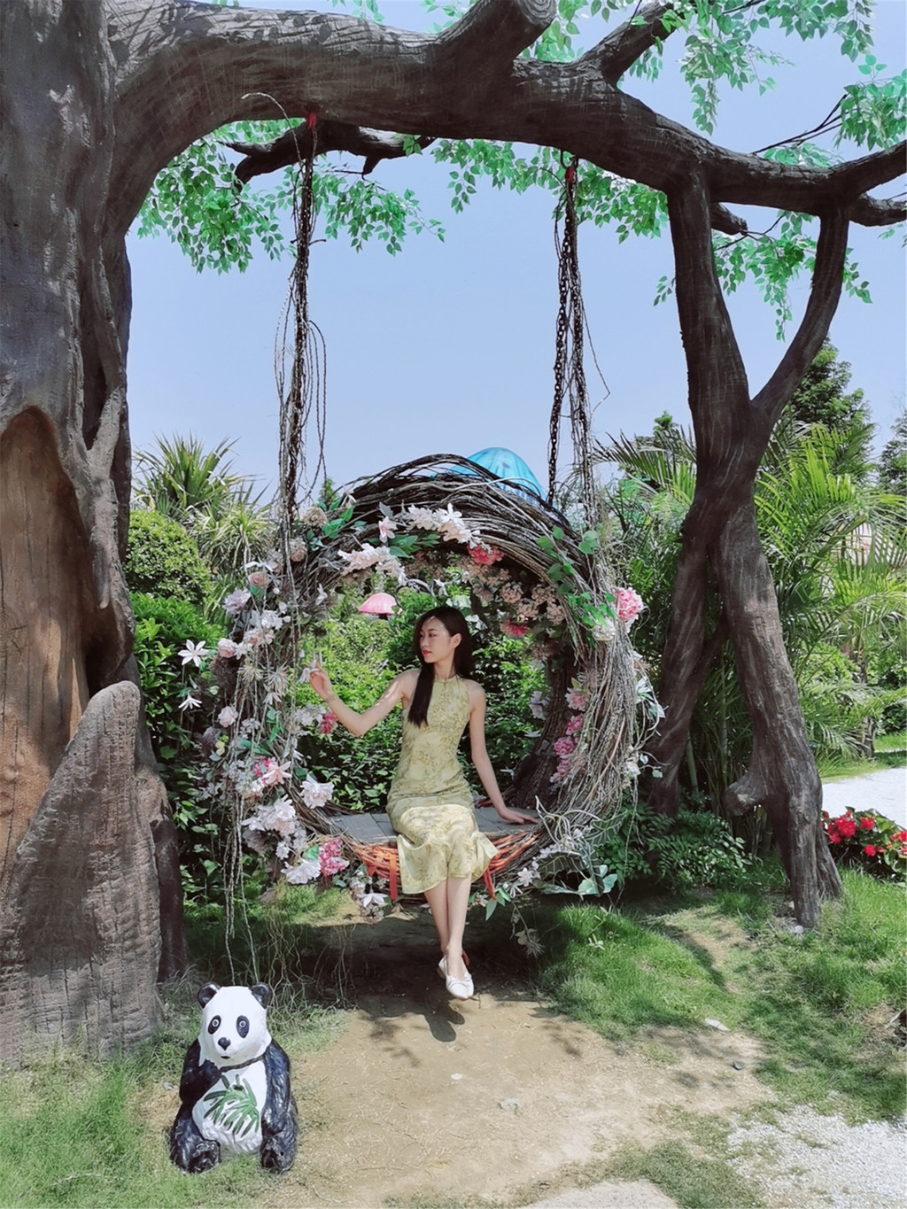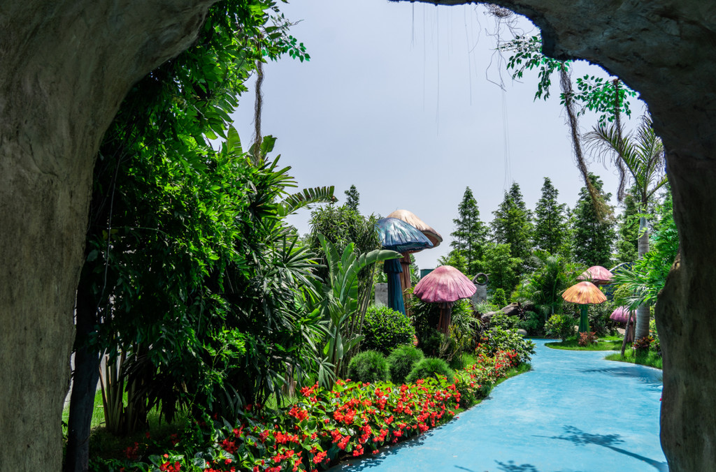 荷兰花市有一座爱丽丝秘境的后花园,巨大的蘑菇、幽深的森林小径、古老树下的花环秋千,特别适合森女系的风格。