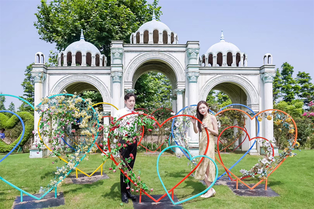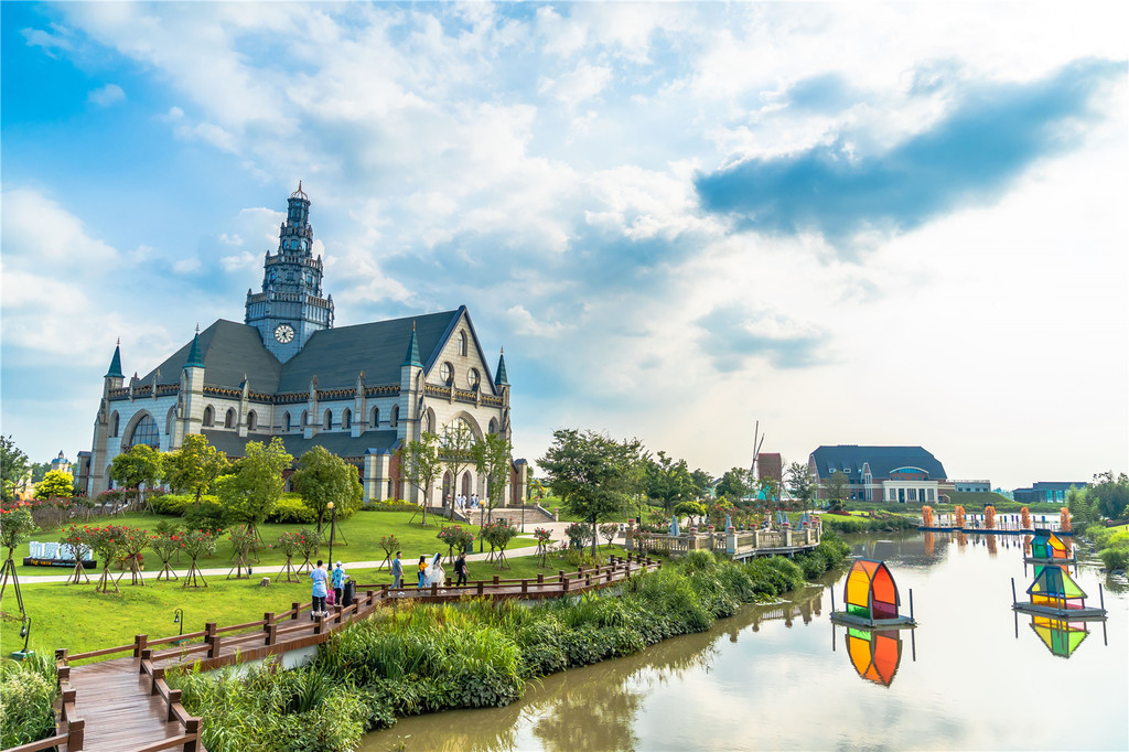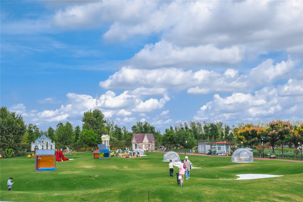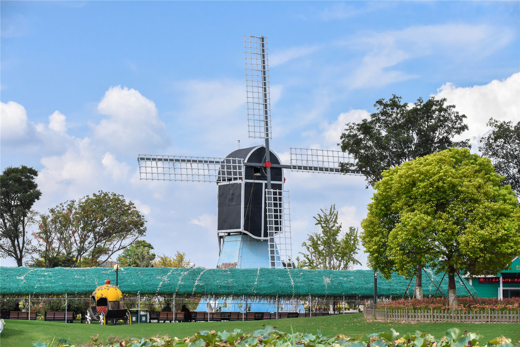 起伏的草地上,坐落着星空小屋、圆顶的欧式建筑、旋转的荷兰风车,是户外草坪婚礼的好地方,也是拍摄欧式风格照片的绝佳取景地。