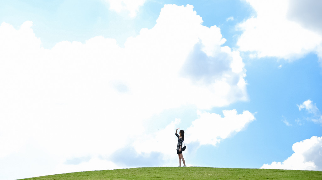 如心剧场的四周是青葱的山丘,蓝色的天空漂浮着白云,坐在山坡上等风吹来,每一帧都是宫崎骏笔下的动漫画面。