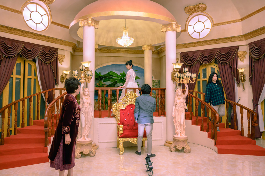 六大剧场有二个室外,四个室内,如意剧场在景区外的荷兰风情小镇,是拥有56个房间场景的婚纱摄影基地,每当夜幕降临,这里便成为了一个剧场,12个因爱而生的微戏剧都将在这里上演。