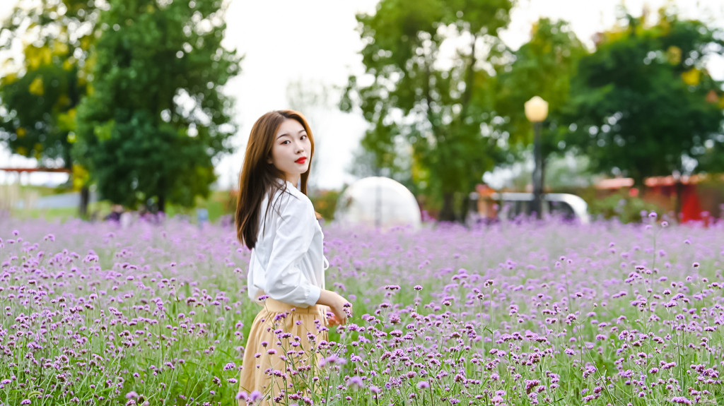 荷兰风车、白色老爷车、热气球……点缀在花海中,远处是矗立的欧式尖顶教堂,置身花海,花香扑鼻,连风都是甜的。蓝天、白云为画布,在紫色如瀑的花海中激情相拥、挽手而行、尽情奔跑,每一步都是甜蜜的,每一帧都是美丽的。