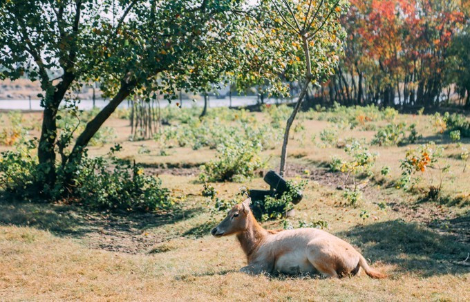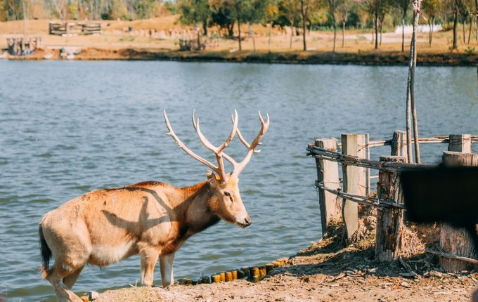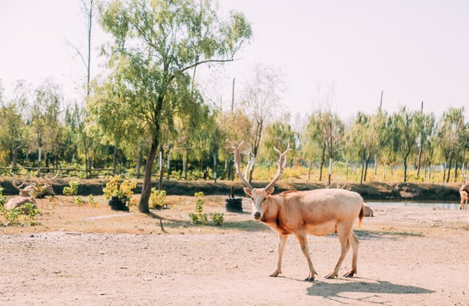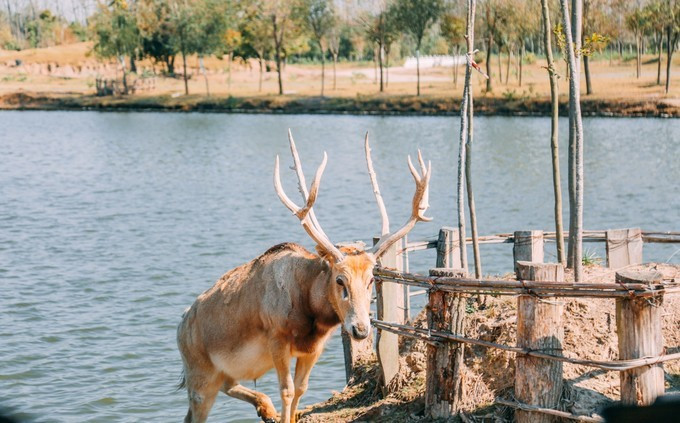 这些麋鹿几乎都是野生半野生的,有饲养员平日里喂养,尤其是刚出生的麋鹿,很多时候都会错认饲养员为麻麻,所以这些鹿儿并不是很怕人。