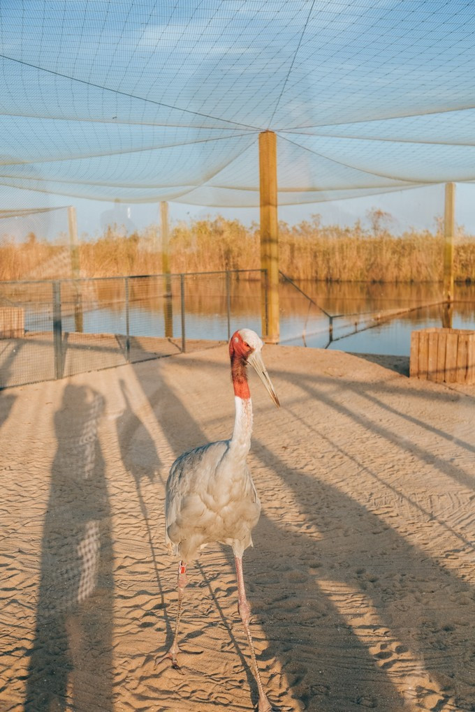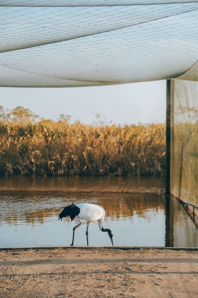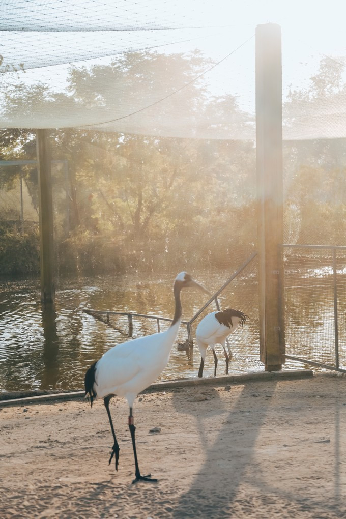 这些鹤儿每天下午会有固定的时间被放出来,训练一下它们的飞行能力,如果来的时间凑巧,也可以看见鹤儿飞翔的样子。