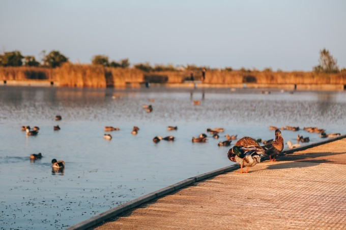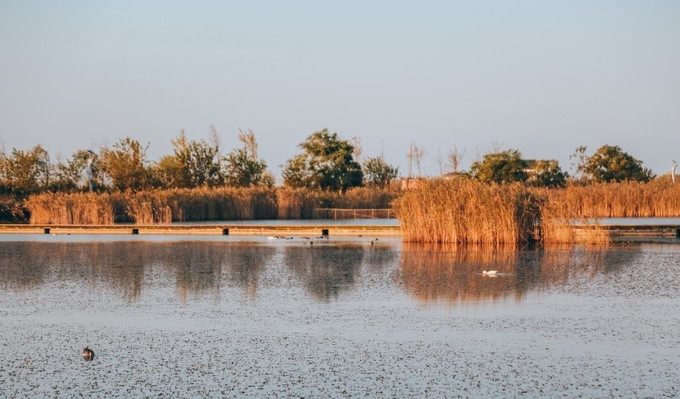 水禽湖是人工淡水湖,主要是仿保护区内部生态环境为野生水鸟营造的,是一个可以让游客近距离欣赏鸟类的湖泊。这里,湖边有柳、湖里有鱼、湖中有鸟。