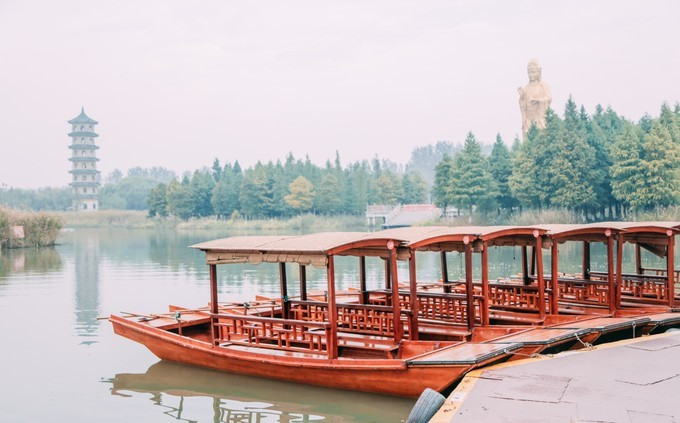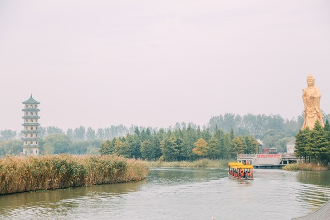 在水中,有一尊水上观音,高达25米,是苏北水乡第一佛。很好的彰显出佛教文化的无限魅力。