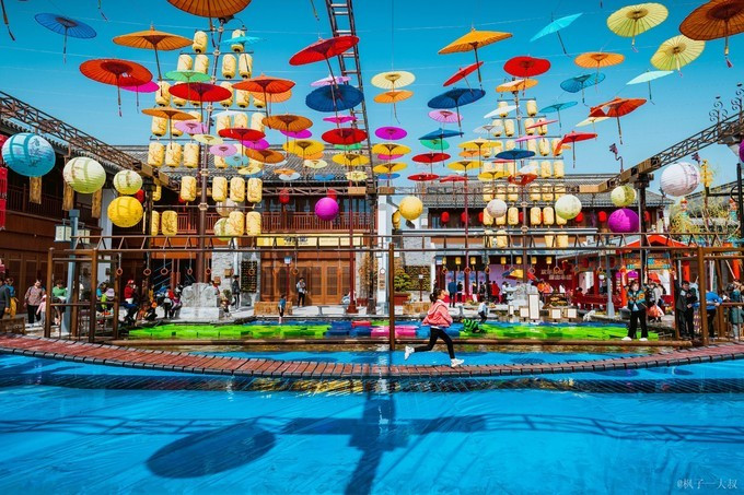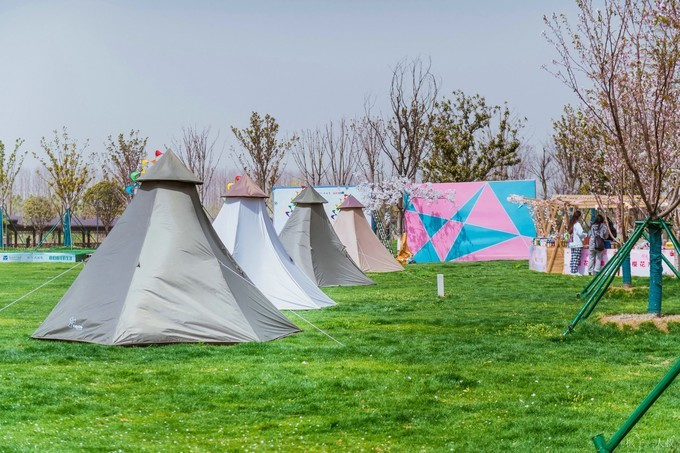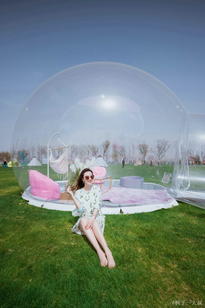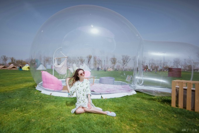 景区内除了汉服快闪和不同演艺节目外,还有举办帐篷节,在一处宽广的草地上,不同造型和主题的帐篷散布其间。当你不想循规蹈矩住在酒店时,就可以来这体验一下户外的自由睡眠,尤其是浪漫的星空帐篷,白天可以拍出浪漫的照片,晚上能与她与星夜作伴。