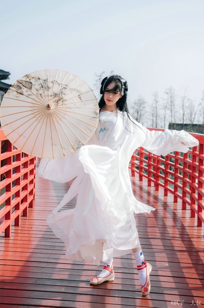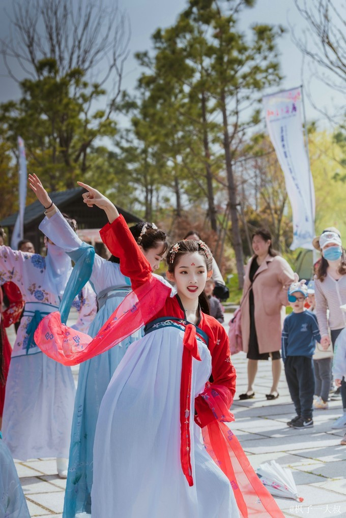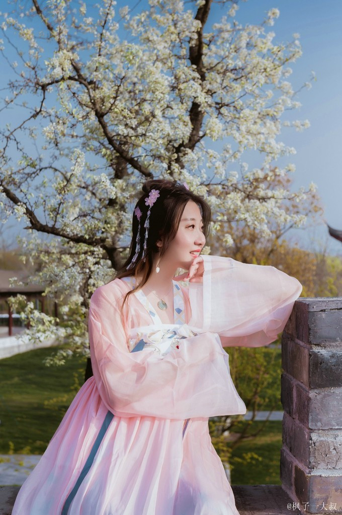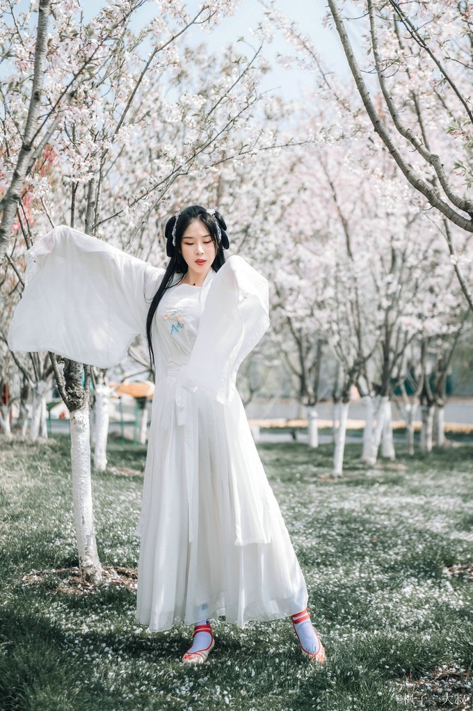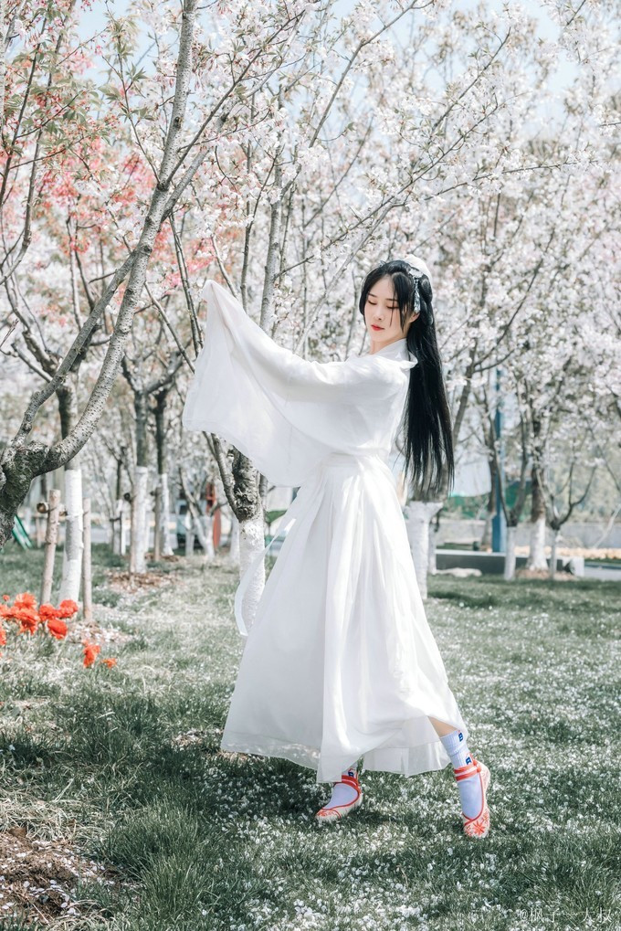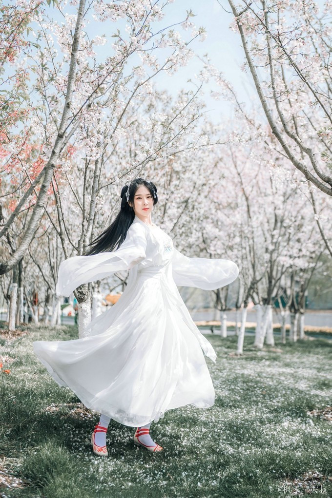 朵朵樱花矗立枝头,远远望去,繁花满树,绽放如雪。一阵微风吹过,落樱如雪,几乎同一时间林同学在我们眼前跳起一场优雅的古典舞,裙摆间与樱花与阳光交织相映,绽放出说不出的美感。