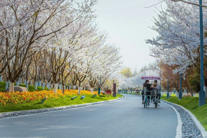 进入南门后从赏樱桥为始,经过樱花大道串联起樱花博物馆→樱花花园→樱花隧道等赏樱景点。