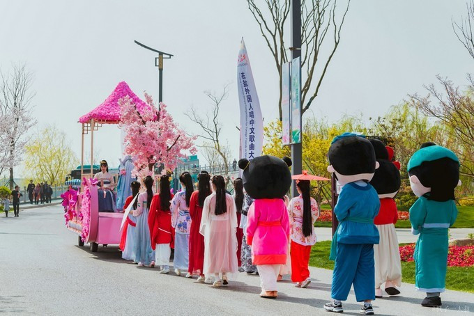 白天除了在樱花小镇可观赏60000余株的浪漫樱花花海,还有大洋湾樱乐现场+花舞巡游,樱花牛人偶组队快闪、外国人歌唱比赛、樱花仙子主题巡游,走着走着不经意间就会碰到一场惊喜。