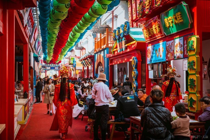 三、舌尖唐渎里看完樱花来后大洋湾景区南大门一侧的唐渎里美食街,这里人潮涌动,重现舌尖盛宴,除了非遗美食、国内名小吃、网红美食、更有盐城八大碗让人唇齿留香、回味无穷。