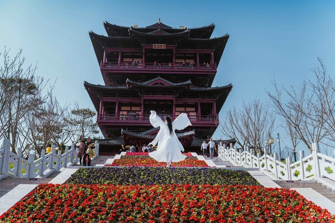 目前大洋湾的樱花面积有6000多亩,共有50余种樱花品种、60000余株樱花,基本涵盖了国内樱花的所有品种,可以说是一站式看个够。整个樱花小镇里花海烂漫,暗香浮动,趁难得的春光,赶紧给同行的小乔拍一组汉服写真,刷爆朋友圈。