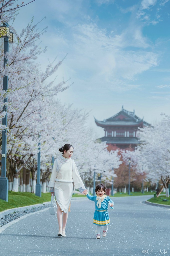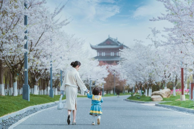盛开的樱花敲开春天的大门,繁花满树,似雪非雪又胜雪,落着樱花雨的大道绽放可人的笑脸。在三月份的尾巴我约上了几位好友来江苏盐城大洋湾赏樱花,两天的时间各种汉服写真、亲子旅拍拍不停,快门一不留神按了2千多张,全程吃狗粮,幸福度100%,柠檬度99%。
