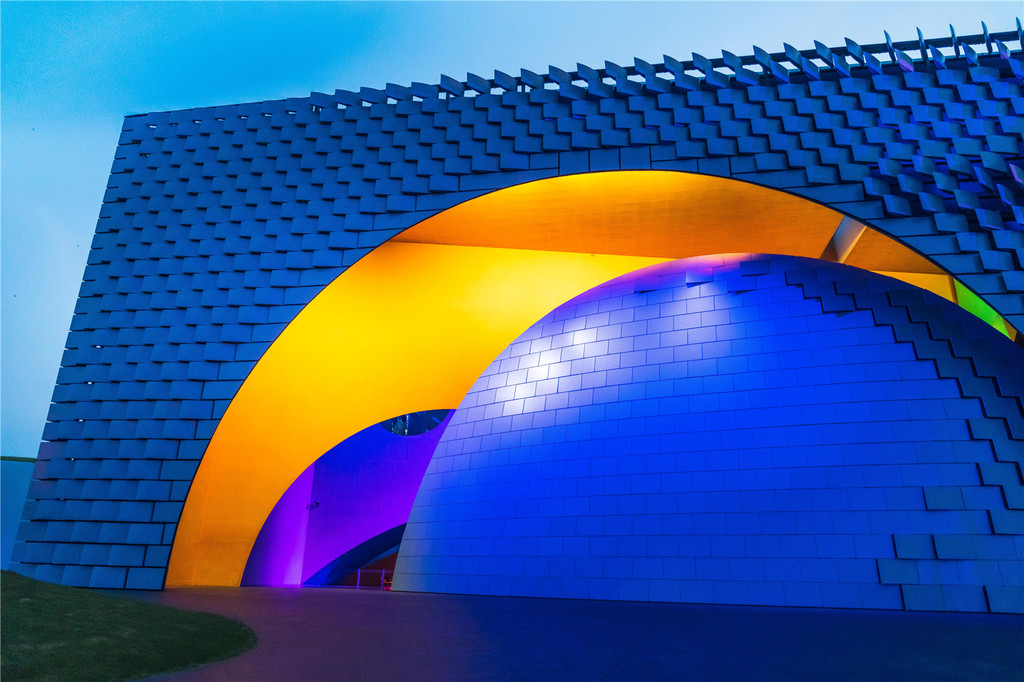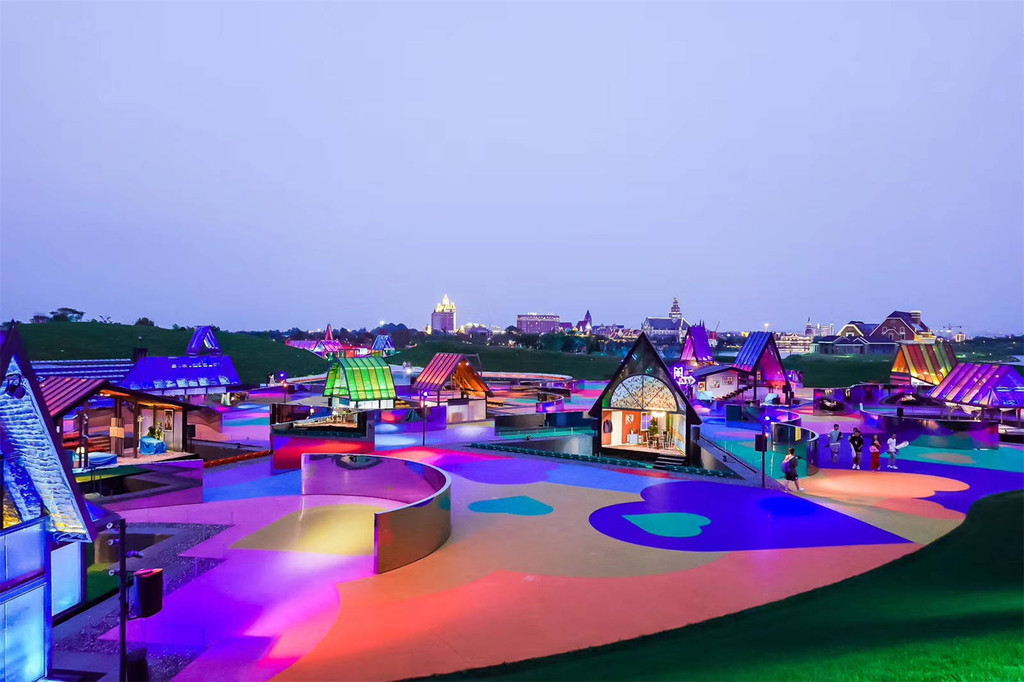 六大剧场有二个室外,四个室内,如心剧场是一个巨大的心形广场,中心有一个心形的水池,薰衣草紫,天空蓝,幽绿,明亮的橙色橙,组成了糖果色的幻境,特别适合拍摄糖果风的照片。9个互不关联的空间,也是九个独立不同的场景,没有演出的时候,便是拍照的实景哦,圆弧形的不锈钢镜面隔断,让如心剧场更增添了无穷的妙趣。每当夜幕降临,这里便成为了一个剧场,12个因爱而生的微戏剧都将在这里上演。
