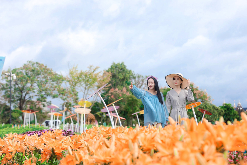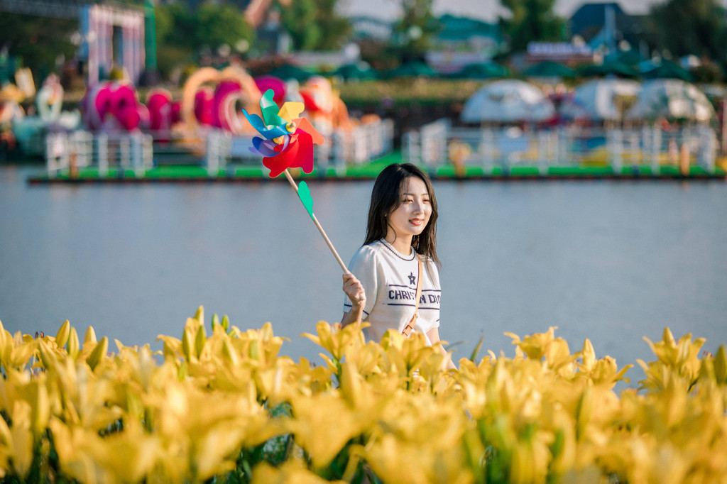 这里有着人间最美的秋天,一朵朵百合花在清风里摇曳轻摆,徜徉在百合花海中,赏着优雅花姿,沁人花香扑面而来,你才会发现,原来秋日里的童话也可以这么色彩斑斓,游走其间,宛如绿野仙踪般的童话世界,临湖花香小道、林荫粉黛乱子草海、网红剧场‘只有爱·戏剧幻城’等,成为游客打卡点。