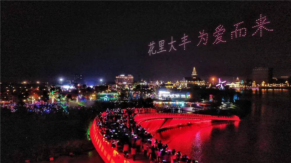夜色渐晚,华灯初上,浓郁的晚霞爬满了天空,湖水中倒映着圣劳伦斯教堂的影子,优雅的白鹭在风中轻舞,荷兰花海褪去白日的喧嚣,迎接温柔的夜色到来。“爱上夜花海”音乐节无人机表演秀、近景魔术秀“爱在花海”快闪等夜游活动让你见到花海最撩人的一面!