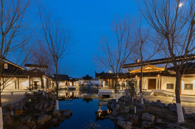 盐城大洋湾颐和湖畔是以“孔桥”与陆地相连的小岛“孔园”,与一旁的湖畔半岛“远香堂”以亭桥相连,两者构成了酒店的私属空间。孔园,曾为戏曲作家孔尚任的旧居(遗址复建),而正是他在盐城任职期间,酝酿了那部传世剧本《桃花扇》。巧合的是,桃花扇的故事发生在南京,而今天的颐和正是从南京发源、成长后落子盐城。