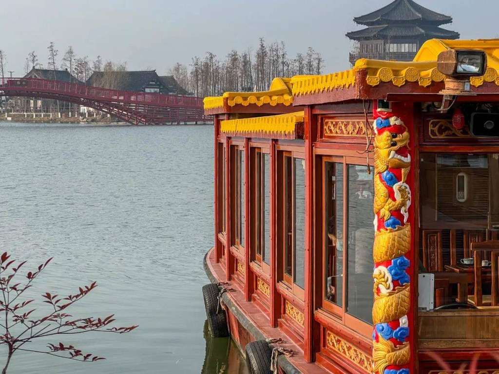 画舫在大洋湾的湖面上荡漾,公园里熟悉的建筑物一栋一栋从眼前到身后,从水中赏景的角度果然别有一番韵味。再喝一口咖啡,尝一些小点,伴随着淮剧《桃花扇》的吟唱,开启美妙的一天。