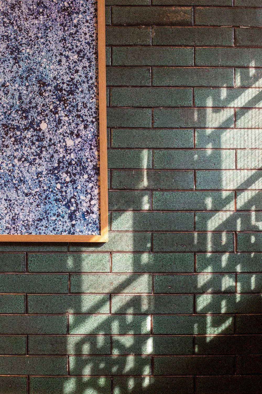 用以装饰的背景画,同样是盐画,却比大堂里的色彩更轻盈。