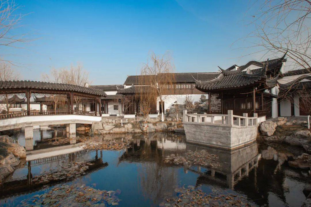 以“孔桥”与陆地相连的小岛“孔园”,与一旁的湖畔半岛“远香堂”以亭桥相连,两者构成了酒店的私属空间。孔园,曾为戏曲作家孔尚任的旧居(遗址复建),而正是他在盐城任职期间,酝酿了那部传世剧本《桃花扇》。巧合的是,桃花扇的故事发生在南京,而今天的颐和正是从南京发源、成长后落子盐城。