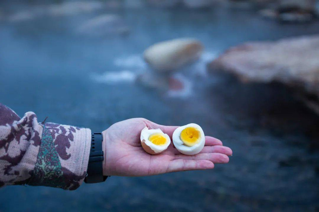我看得到汩汩的温泉一刻不停地向外涌动着。这里的温泉富含偏硼酸、偏硅酸,出水口温度62度,很符合泡温泉的水温。来这里不尝一下新鲜制作的温泉蛋,就太可惜啦!