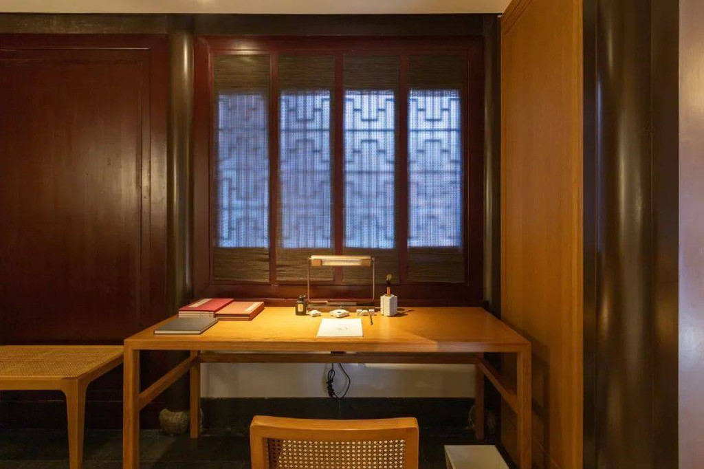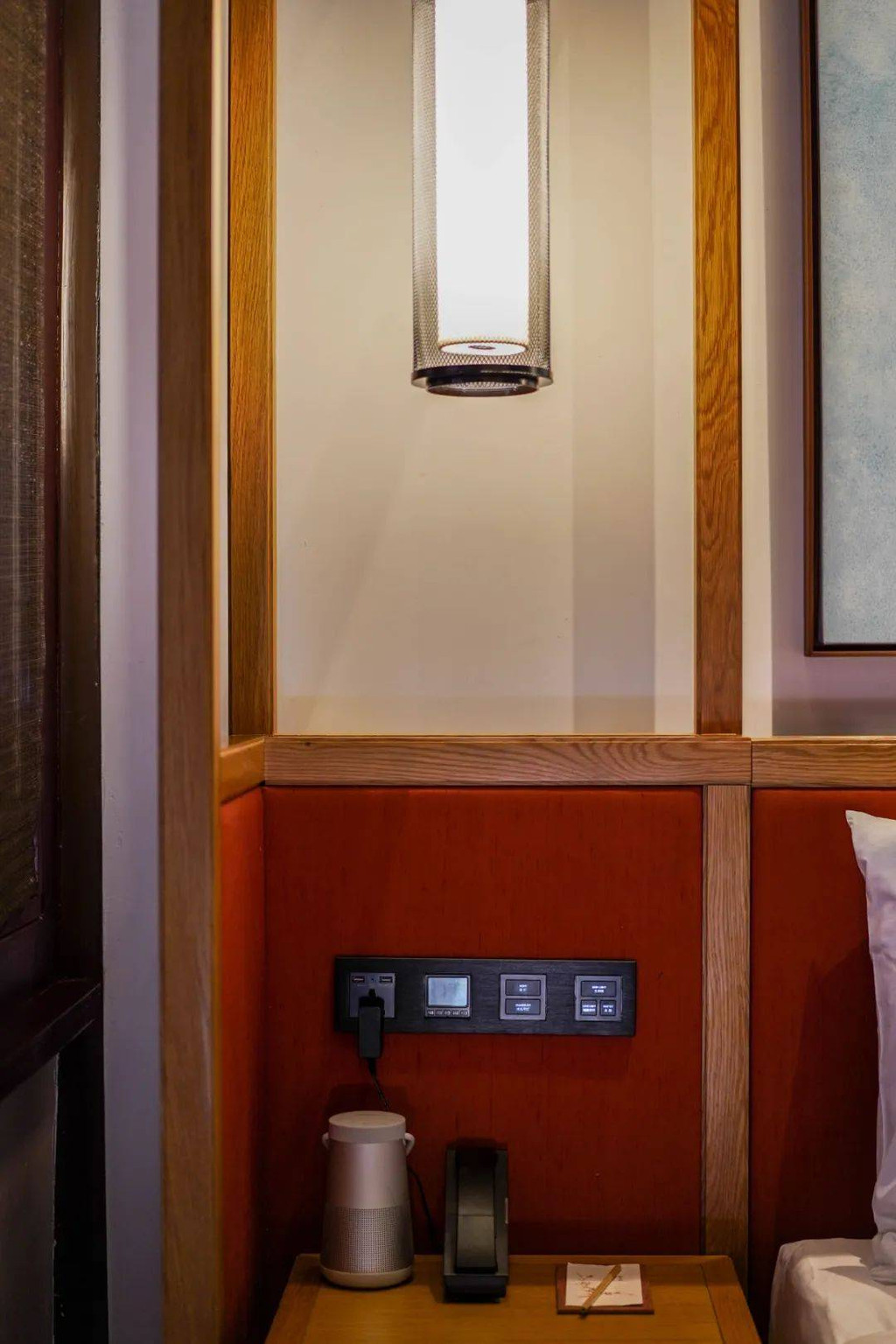 我从熟悉的文房四宝里找回了儿时写书法的快乐(颐和芥子园的套房里有相同的配置),但耳畔传来的时尚律动却来自Bose Revolve+(另一侧床头还有一个小度音箱)。这种古今的碰撞,丝毫不会觉得突兀,反而成为颐和客房里的一大特色。
