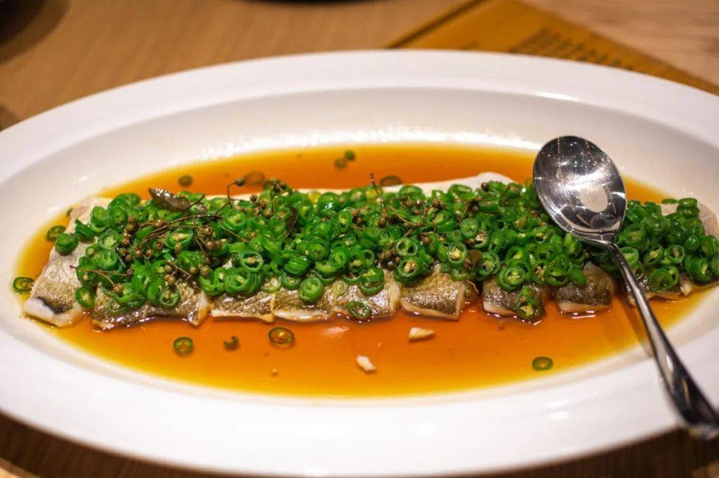 最让我念念不忘的是莼菜鸡头米炖鮰鱼狮子头,以及鲜椒花雕蒸白丝鱼两道菜。采用淮扬菜的经典技法,在选材上又有所突破,突出船菜“河鲜”之美,品相和口感都相当不俗。