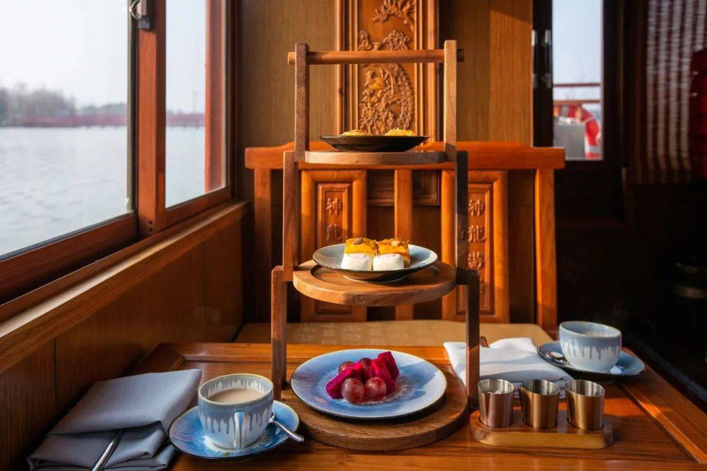 想尝试不一样晨醒时光的,不要错过酒店的游船早茶。从酒店专属的孔园码头出发,一场历时45分钟的特殊早茶等待着我。