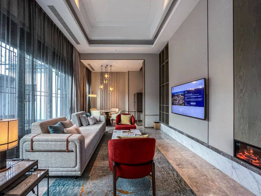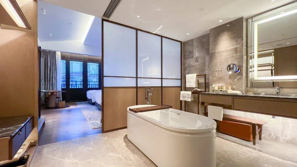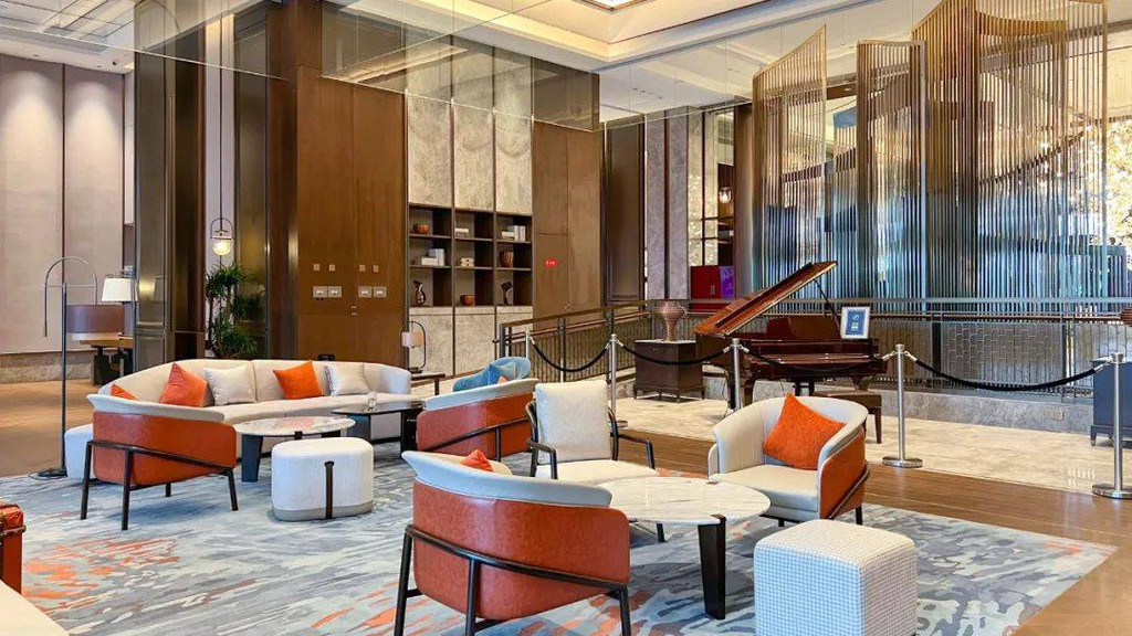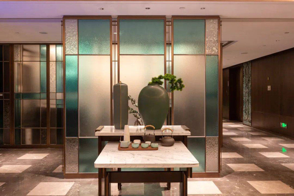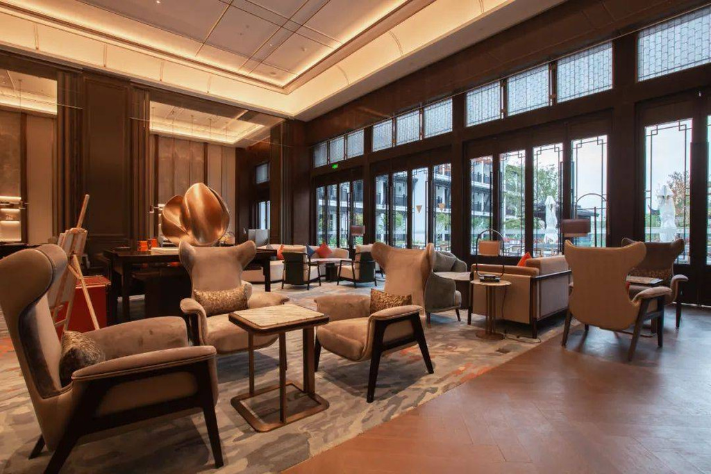 大堂吧的室内区域也很惬意,融入了江南园林元素的新中式风格空间调性十足,坐在这里听听悠扬的钢琴声,点一壶中式茶,这样的中西合璧也别有一番趣味。