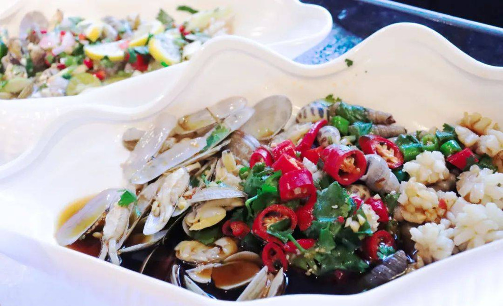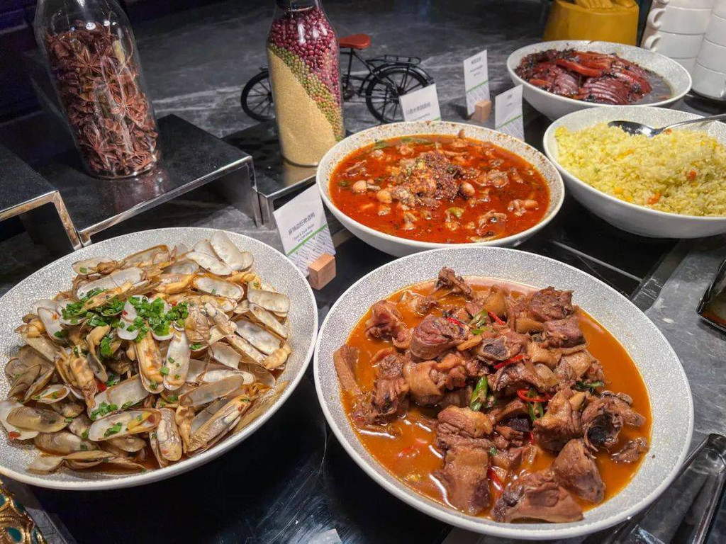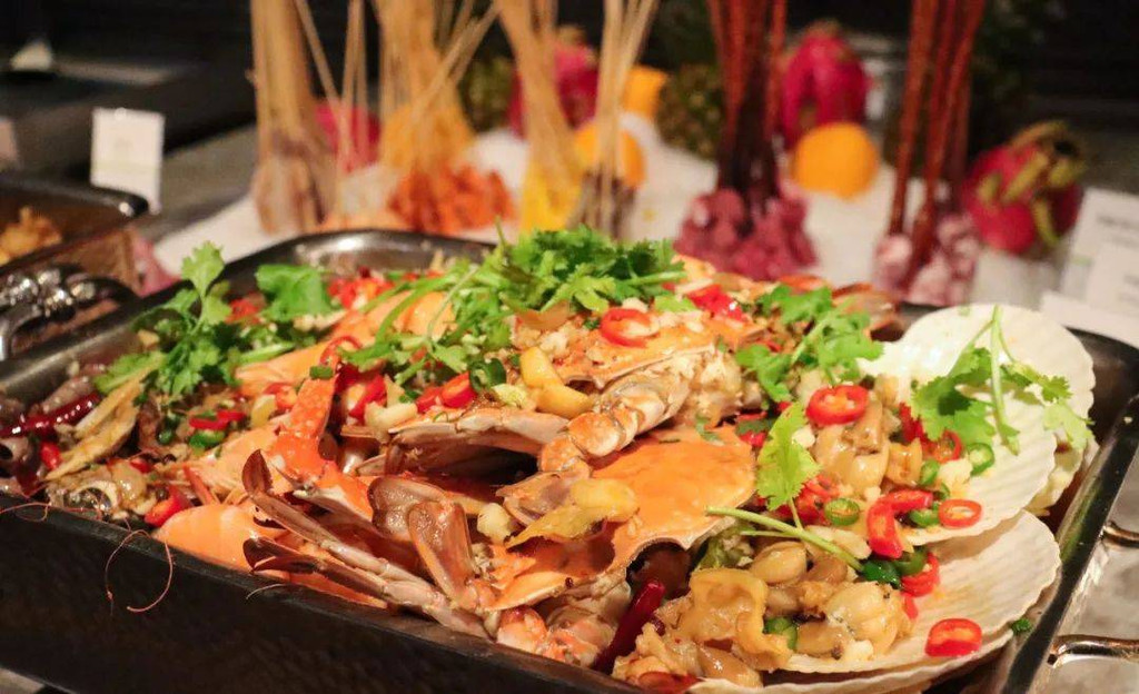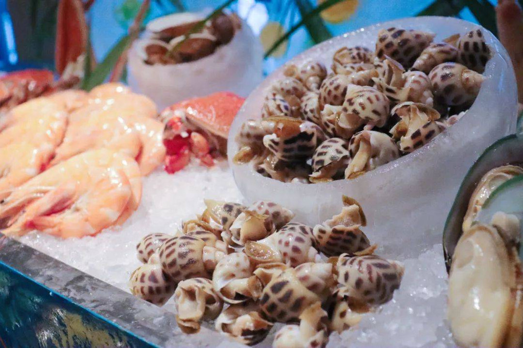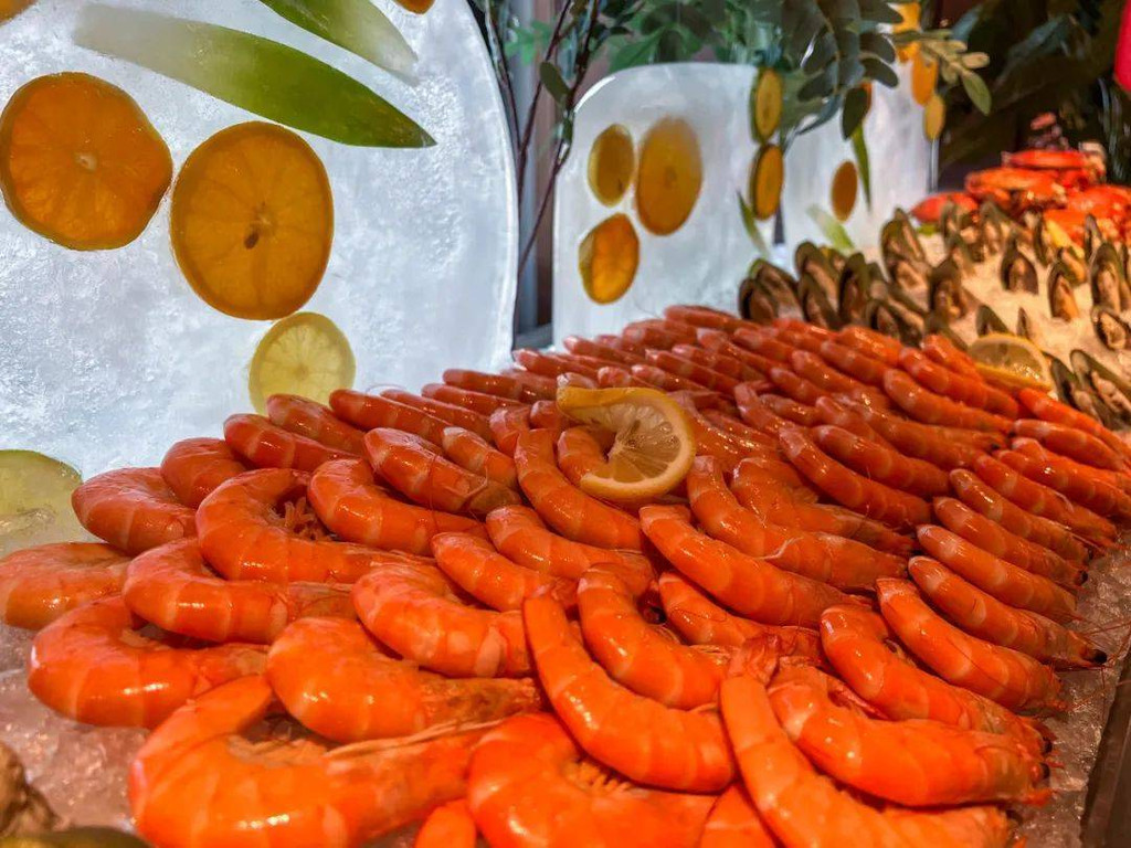 开放式厨房的明档料理现场烹饪,增加了安全度与互动感,两个超大的精酿啤酒桶也非常抓人眼球。晚餐自助餐会根据不同的季节推出不同的主题,近期的主打是东海海鲜美食节。